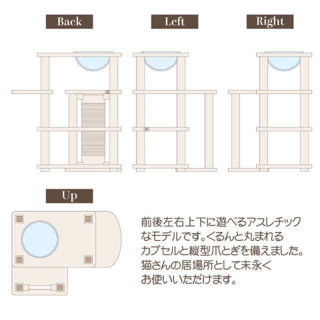 ・ポイント1:最上段には猫さんがくるんと丸まって入れる透明カプセル搭載。